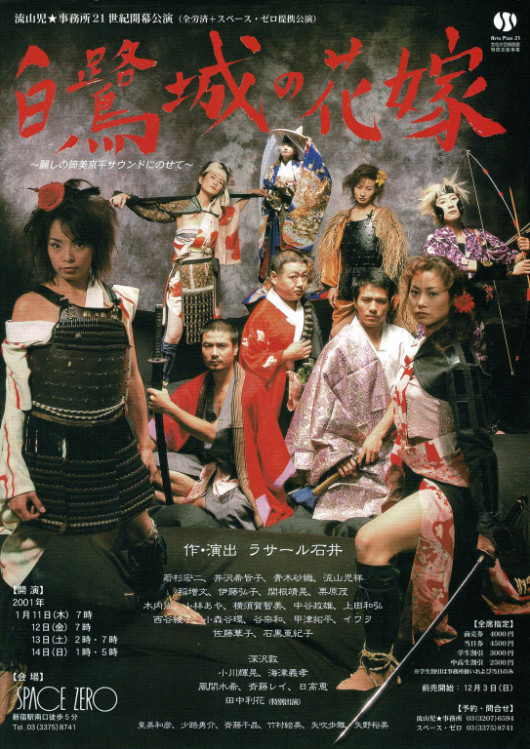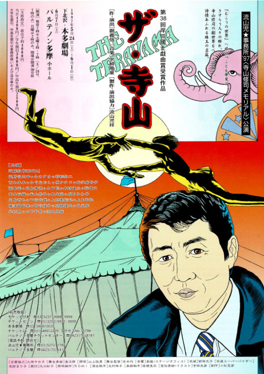 『花札伝綺』は1967年に演劇実験室◎天井桟敷により初演。大正時代の乞食横町の葬儀屋を舞台にした「人間の生と死」の転倒をテーマにした寺山修司版「三文オペラ」と呼ぶべきニヒリスティックな喜劇。2001年、流山児祥はこの『花札伝綺』に寺山修司の市街劇台本やラジオ台本を大胆にコラージュして「街と現在」、「人間の生と死」を描き、70人余にも及ぶ登場人物達が出演し、新宿周辺で「半市街劇」を含む、壮大なテラヤ