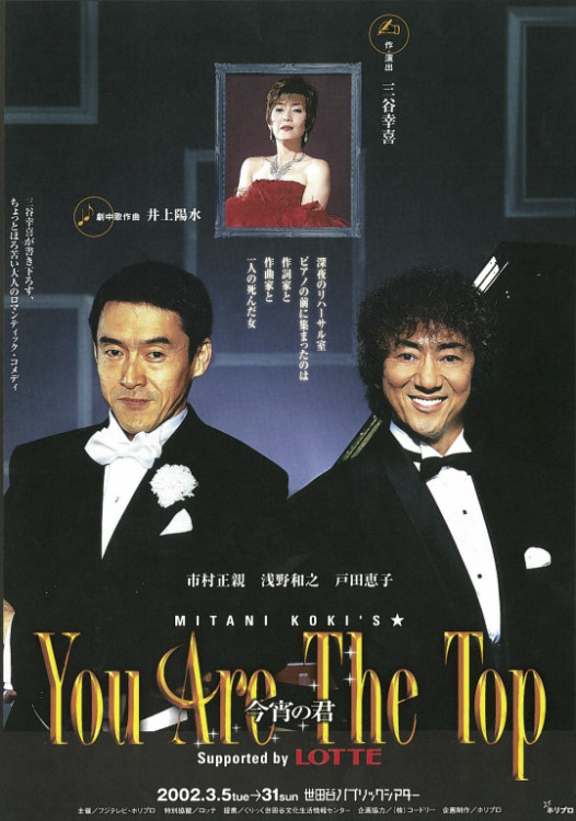 三谷幸喜書き下ろし・演出による、ちょっとほろ苦い大人のロマンティックコメディ。今は亡き女性シンガーと組み、かつては様々なポピュラーソングを発表、ヒット曲を連発して来た作曲家と作詞家二人の男。彼女の7周忌に開かれる追悼コンサートのために久しぶりに顔を合わせた彼らは、彼女に愛されていのは自分だとお互いに言い張りのだが…。