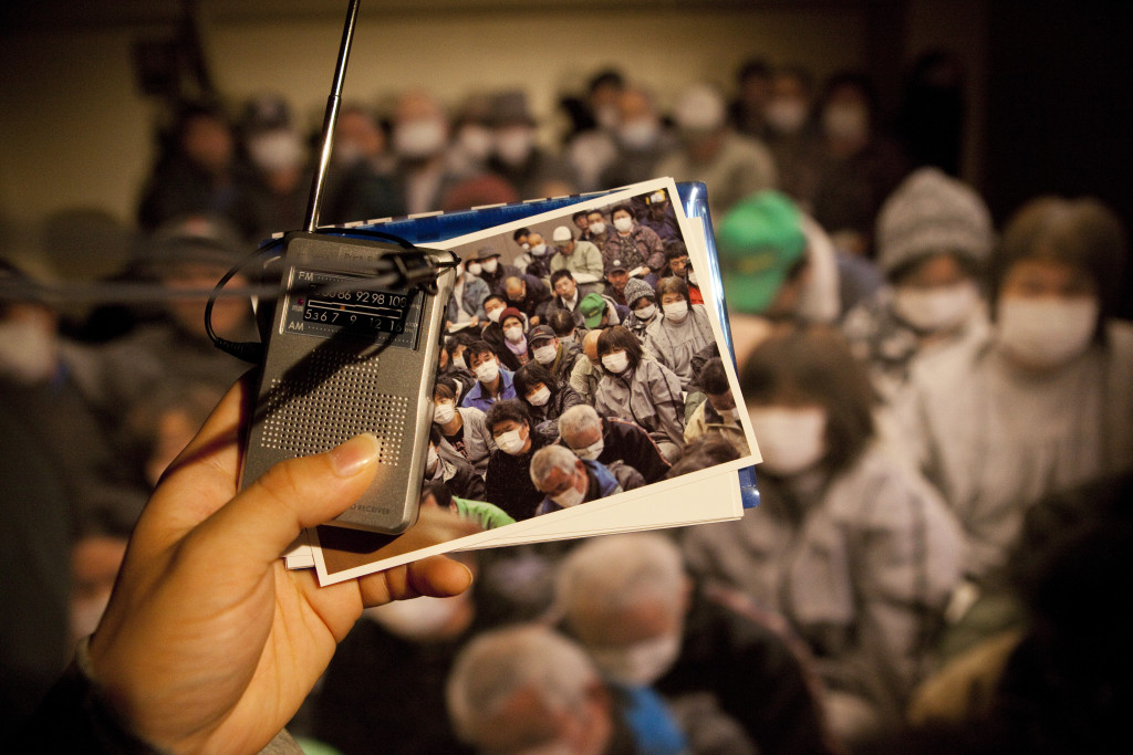 3.11への応答「光のない。」の続編として発表されたエルフリーデ・イェリネクの「エピローグ?(光のないⅡ)」をツアーパフォーマンス形式で上演。観客はFMラジオを首に下げ、原発事故後の福島で撮影された報道写真を手に、東京・新橋の12カ所のポイントを巡る。目的地に待つのは、写真に記録された「眺め」、カメラマンの「視線」を重現する装置。さらにラジオのダイヤルを指定された周波数に合わせると、戯曲を読み上げる少女の声が聞こえてくる。被害者/加害者の別さえなく、移り変わり続けるイェリネクならではの「わたし/わたしたち」の声は、サラリーマンの街・新橋に二重写しになった福島のイメージを前に、その遠さと近さ、距離を強く意識させる。(F/T12:Documentsより転載)