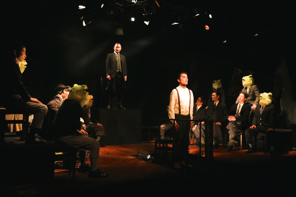舞台は蛙の世界。人間の投げ込んだ石が陰謀ではないかと騒ぎ出す蛙たち。アオガエルはアカガエルと戦争をしていて、大量の捕虜が幽閉されていた。デモプリ党なる保守政党はアカガエル国家と理念を同じにしているカプリ党の謀略とすることによって、カプリ党の党勢を削ごうと画策する。