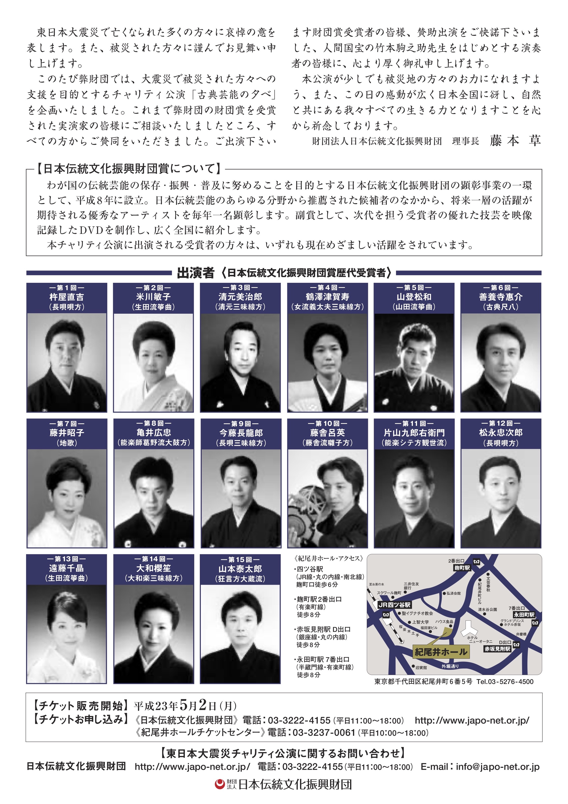 東日本大震災で被災された方々への支援を目的とするチャリティ公演。