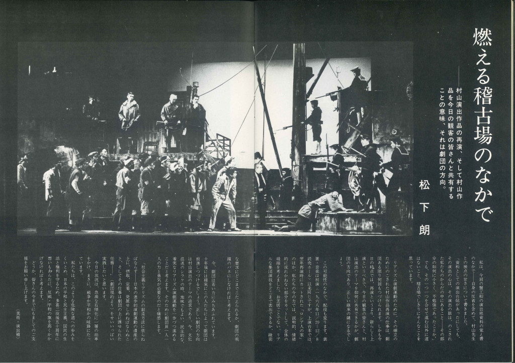 戦前の新協劇団、戦後再建された第二次新協劇団と、中央芸術劇場が合同して東京芸術座の結成に至ります(村山知義・薄田研二共同代表)。以来、リアリズム演劇の創造と普及の運動を続けています。