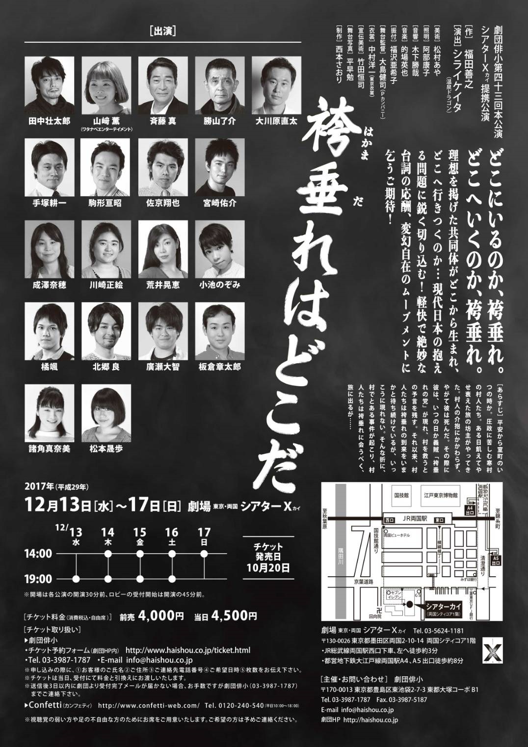 昭和46(1971)年、早野寿郎(故人)・小沢昭一等が中心となって活動していた劇団俳優小劇場が解散を余儀なくされた為、演出家・早野寿郎を主宰者として、昭和49年1月現在の劇団俳小が創立された。
