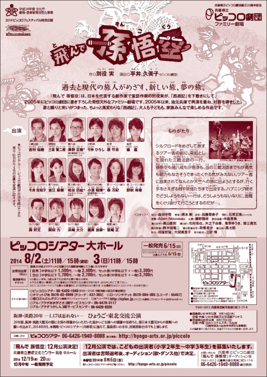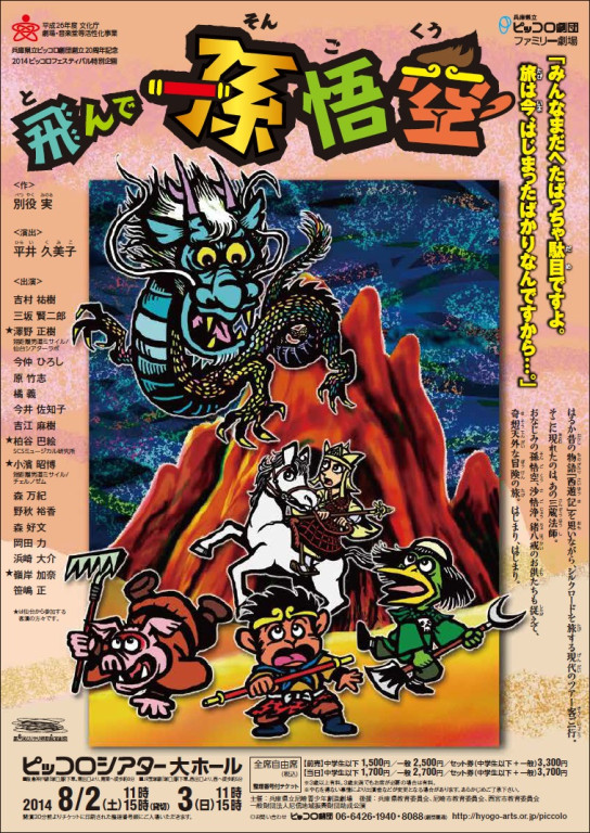 日本を代表する劇作家で童話作家の別役実が、「西遊記」を下敷きにして、2005年にピッコロ劇団に書き下ろした奇想天外なファミリー劇場『飛んで 孫悟空』。