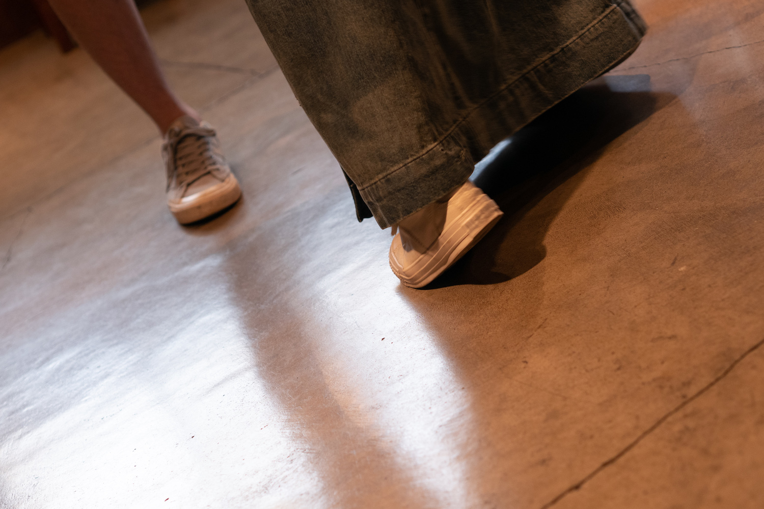 振付家のジェローム・ベルと、タイ伝統舞踊家のピチェ・クランチェンが芸術的実践について互いに問い掛け合い検証する舞台『ピチェ・クランチェンと私』のアイデアをトレースする。舞台芸術の新たな価値を直向きに探究する[小野彩加 中澤陽 スペースノットブランク]。演劇を通じて、人間と世界の虚実入り混じった仕組みを表現するユニット[サンプル]を主宰する劇作家・演出家・俳優の松井周。出自、創造性、世代など、あらゆ