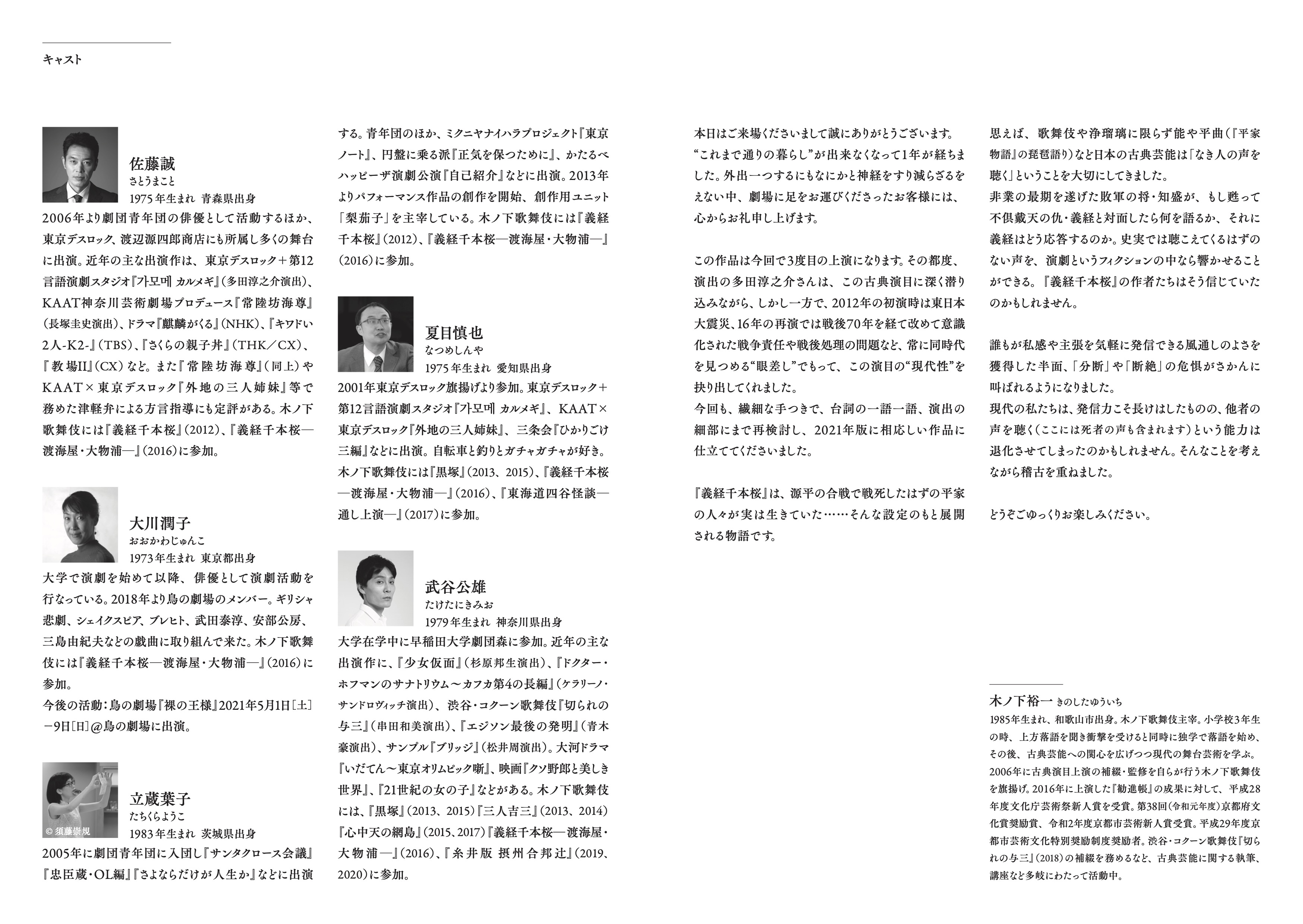 変わりゆく時代の中、変わらぬ信念で戦った知盛の姿は、今どんな相貌をもって現れるのか。平成から令和の改元、疫病による日常の変化を受けての2021年版を演出するのは、もちろん初演・再演に続き多田淳之介。歴史や社会に対する切実な視線、激情と哀切から〈今〉と切り結ぶ作風で、ジャンルを問わず衝撃的な作品群を世に問い続けています。