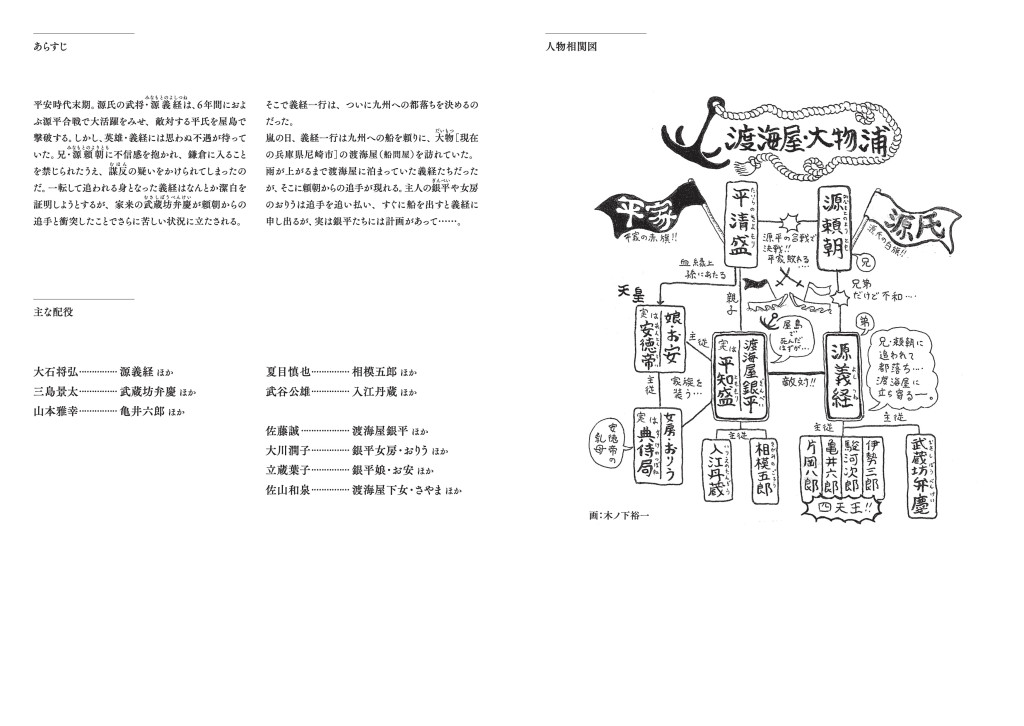 源平合戦後も平家残党が生き延びていたという設定のもと、平家武将たちと源 義経の“その後”を描いた「義経千本桜」は全五段の傑作長編。その二段目「渡海屋・大物浦の場」は、海に身を投げて自害したはずの平知盛が、船宿の主人となり義経に復讐を企てる物語です。