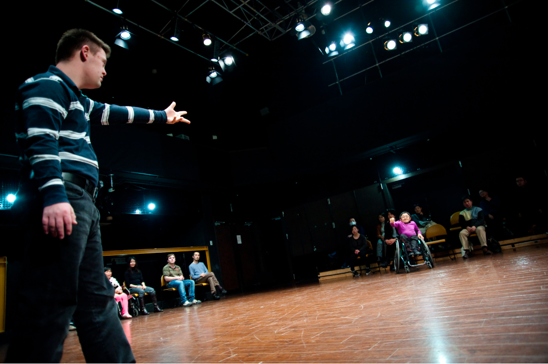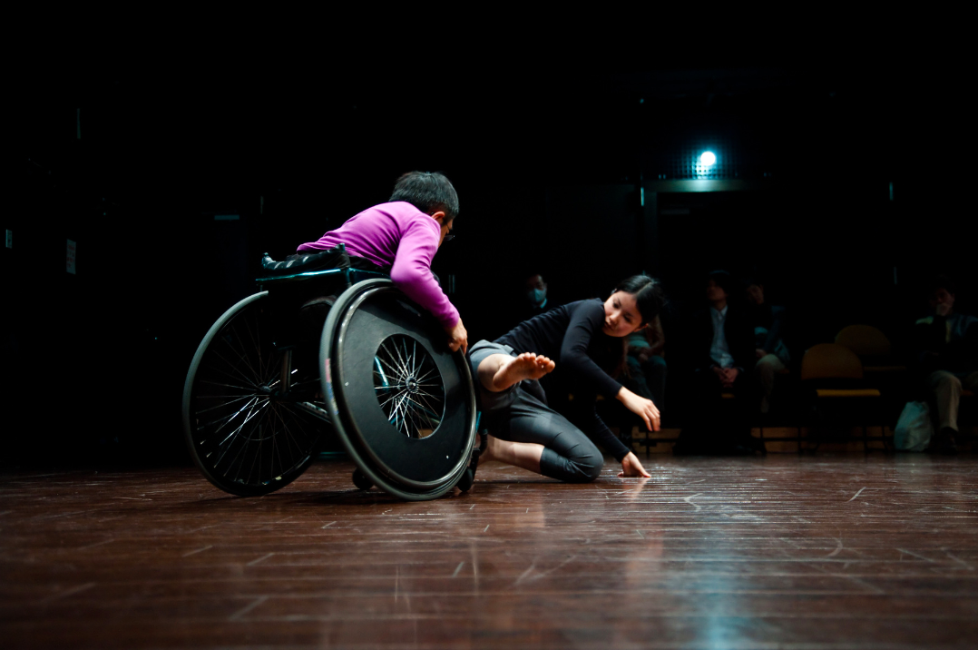 今回、このプロジェクトの第3部として7月にベルリンで滞在制作を行ない、現地で作品を発表した。その後、京都では元・立誠小学校を舞台に、作品が再構成される。『劇団ティクバ+循環プロジェクト』の舞台では、容易には共有し得ない差異を互いに抱えたパフォーマーどうしが出会い、言語では決して置き換えられないコミュニケーションを交わす。さらに、プログラマーの望月茂徳によって車椅子のホイールはDJブースのように音を発するインタラクティブな装置となり、照明や音響といった裏方であるスタッフも舞台上でオペレーションを行なう。当たり前のものとして疑いをもっていなかった感覚、常識、そして舞台芸術の制度そのものを問い直す試みとなるだろう。