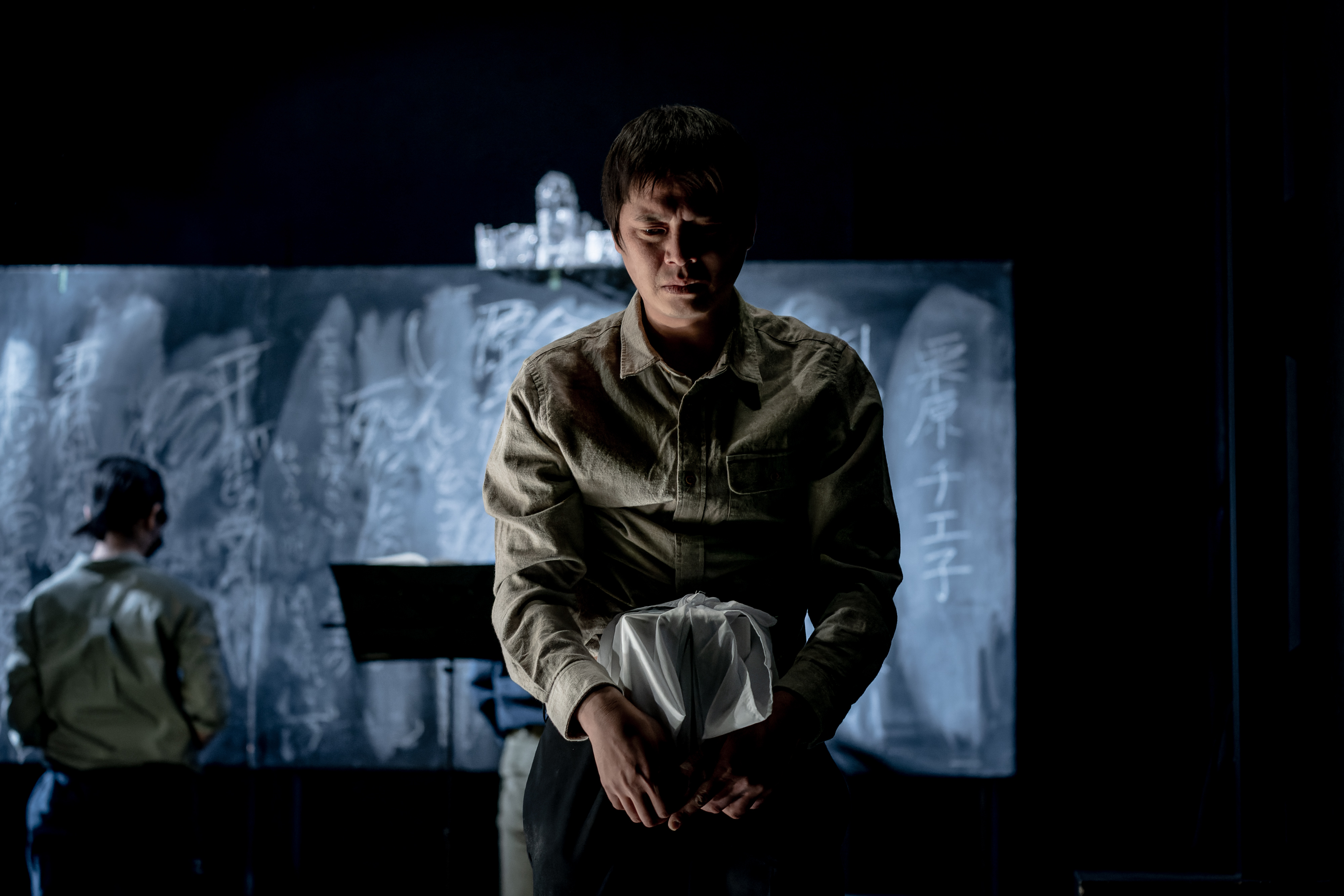 五色劇場と広島アクターズラボは、広島の制作団体 舞台芸術制作室 無色透明の事業として2016年にスタート。烏丸ストロークロックの柳沼昭徳を講師に迎え、広島で継続的な演劇の研究と創作を目的とし、公演を行う際に結成したのが「五色劇場(ごしきげきじょう)」。『新平和』は五色劇場として、これまでに2回の試演会を経て、2019年には広島と福岡で初演した。名前の由来の「五色劇場」は現在平和記念公園になっている「中島地区」に実在した興行場(映画館)の名称。