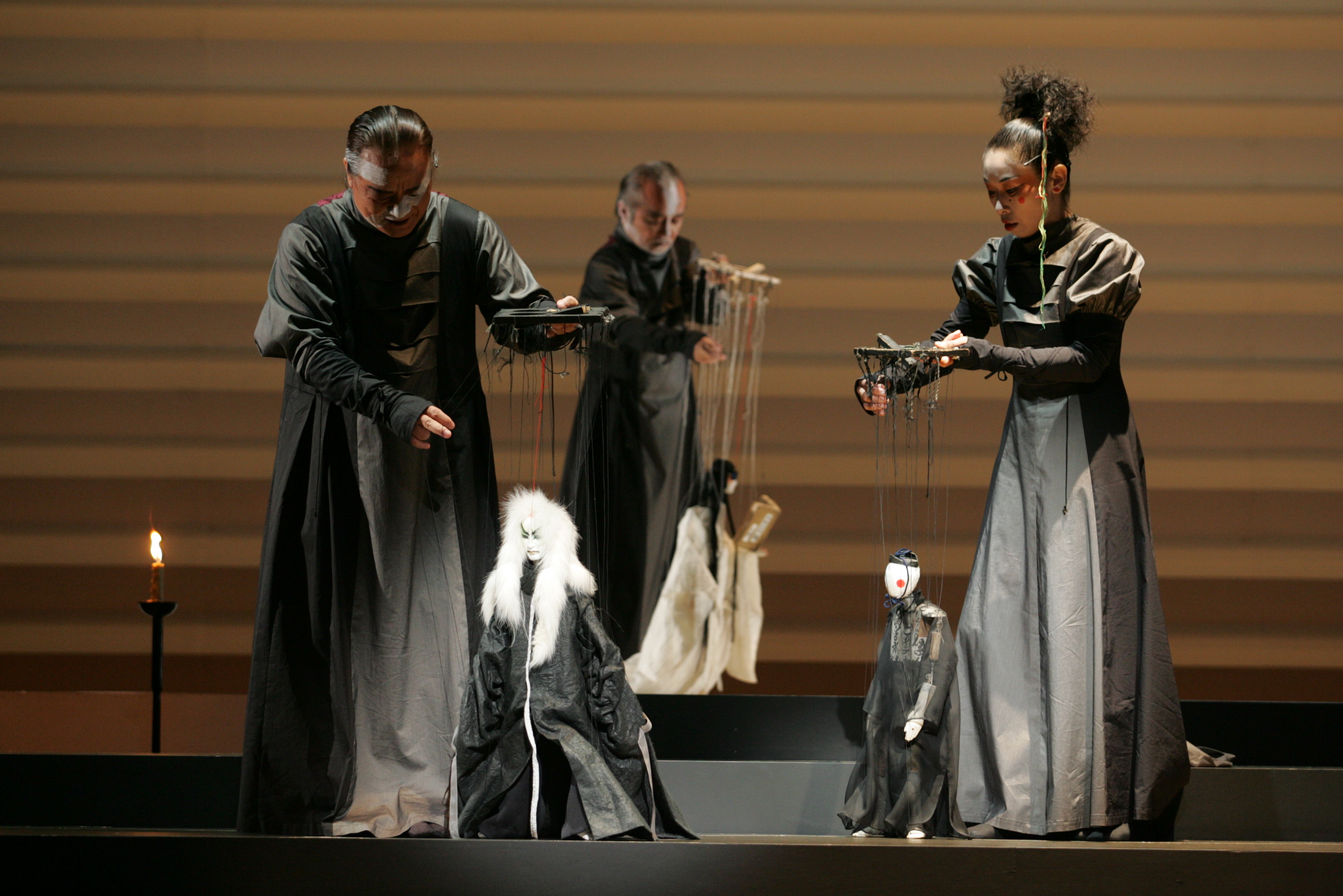 2002年から結城座が参加した日仏共同制作『屏風』。フランスの国立劇場での初演後、数多くの演劇祭や劇場に招待されました。そのコラボレーションのパートナーとなったフランスの演出家、フレデリック・フィスバックと結城座は、創立375周年記念第2弾としてシンガポールの劇作家・郭宝崑の代表作『宦官提督の末裔』を上演します。公演には大久保鷹と花組芝居の加納幸和をゲストに迎え、結城座の人形遣いたちと共演します。