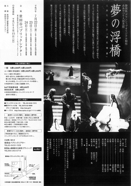 世界最古の小説「源氏物語」を佐藤信が演出。人形美術・山口小夜子、共演・鞠谷友子など、 魅力的なコラボレーションでお届けします。