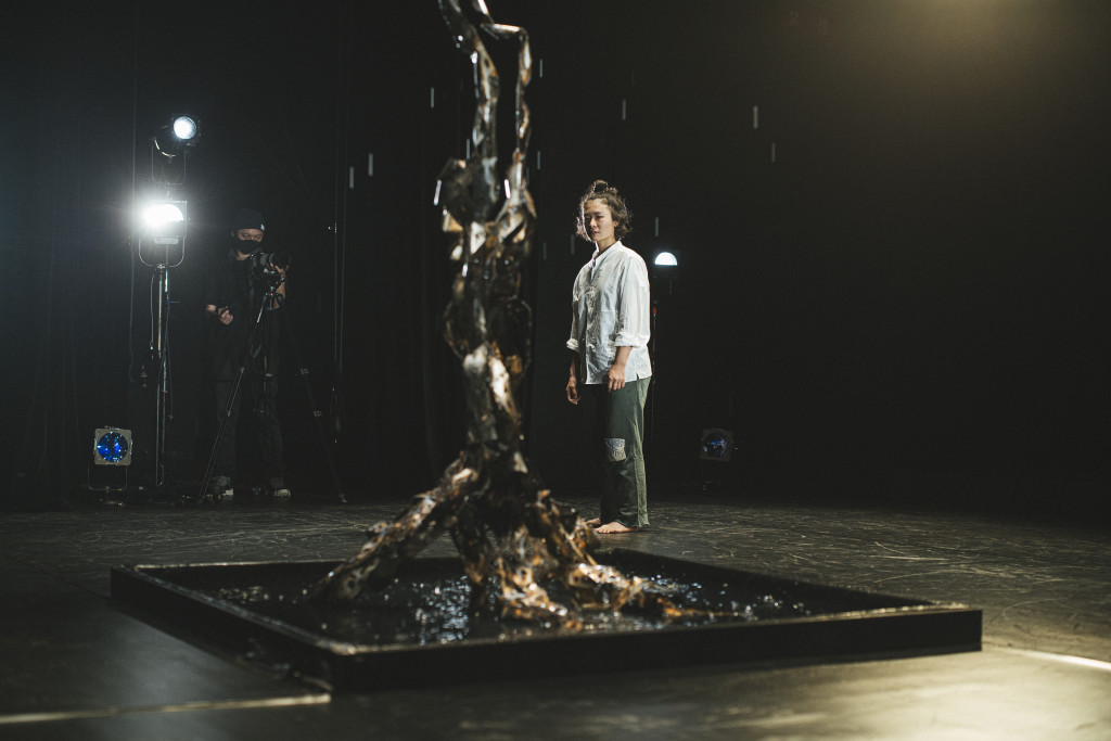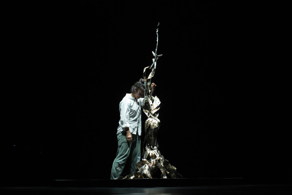「俺が代」は、日本国憲法や、文部省(当時)による教科書『あたらしい憲法のはなし』、そして尾崎行雄、芦田均などの演説をテキストとして用いながら、日本国憲法の本質を浮かび上がらせ、憲法やこの社会についての問いを共有するソロパフォーマンス。これまで愛知県芸術劇場、京都芸術センター、Festival Temps D' Images Cluj などにおいて上演されてきたかもめマシーンの代表作です。憲法という政治的なイシューを扱いながらも、「俺が代」が描くのは、護憲・改憲という特定の立場ではありません。本作は、「俺は、俺の名誉にかけて、全力をあげて崇高な理想と目的を達成することを誓う」と、憲法における「日本国民」を「俺」と読み替えることによって、二項対立的な議論を越えた、憲法に対する新たな視点を描きます。そうして、身体や演劇というメディアが社会に対して持つ可能性が見えてくるでしょう。