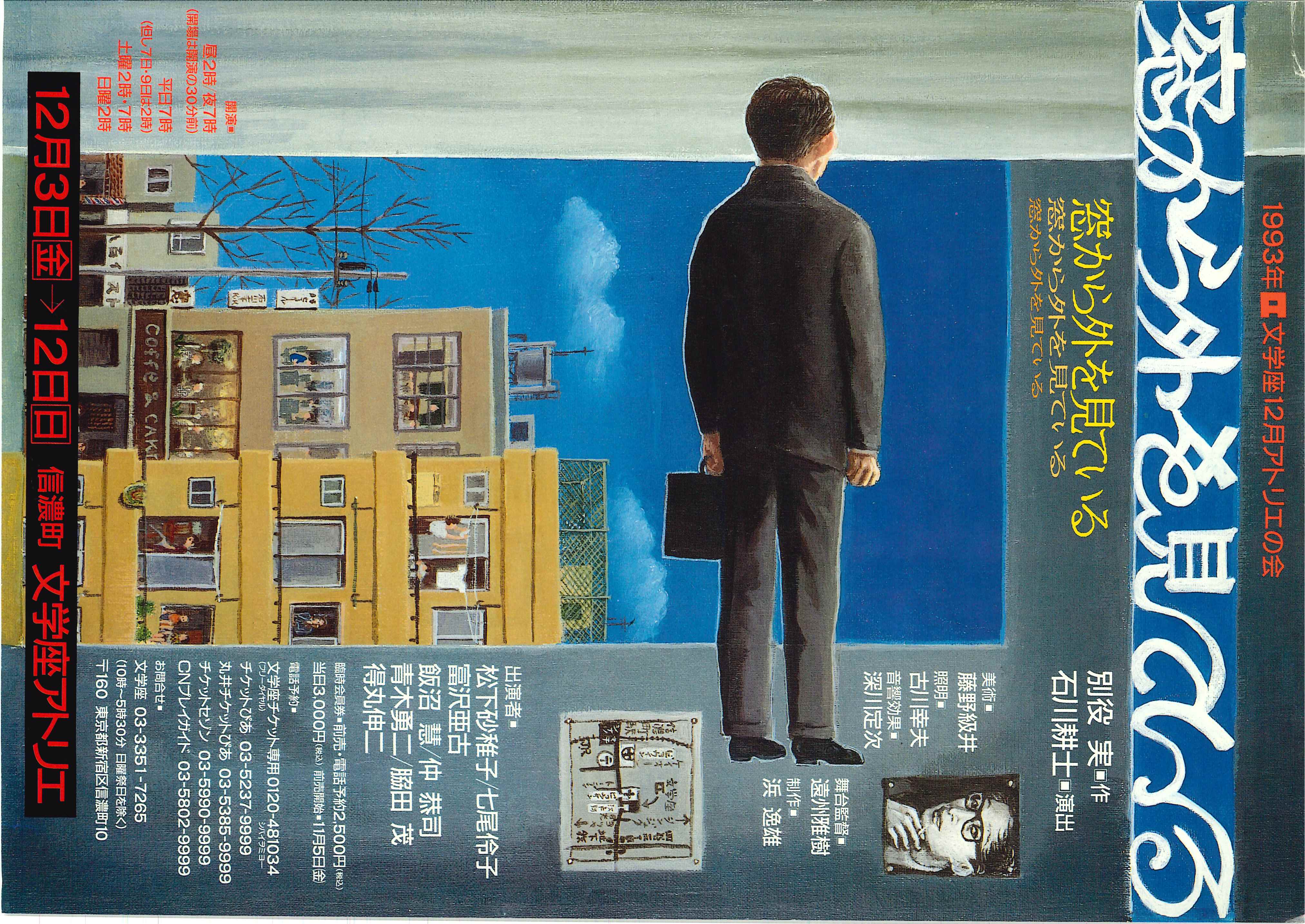 空がくっきりと青い昼下がり。この時間はバスの来ないバス停のあたりは、今日も相変わらずしんとしている。ここはめったに人の通らないところなのだ。そこへやってきた41歳のセールスマン風の男。彼は、通りかかった乳母車を押す女に、ここでバスの回数券をなくしたのだと語る。女の両親も加わって回数券の行方を追及するうち、ごみバケツから一本のドライバーが。これは頻発する自転車泥棒の道具か?あたりにはベンチと電柱柱に鎖で繋がれた自転車、どこにでもあるありきたりの風景。そしてそんな風景をみる、窓から見るという行為は?