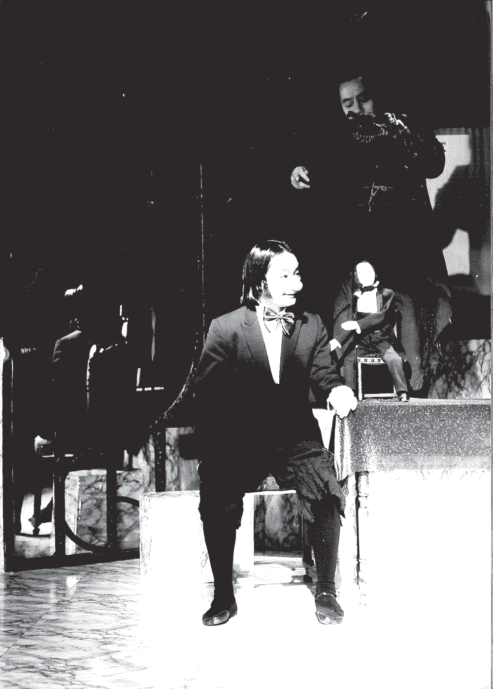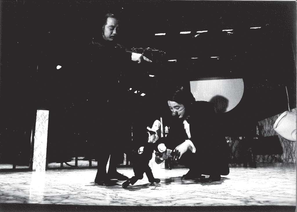 1969年に唐十郎が鈴木忠志の早稲田小劇場のために書いた作品を佐藤信が演出し、糸あやつり人形芝居として上演。結城座では1974年の初演から繰り返し再演されている。
